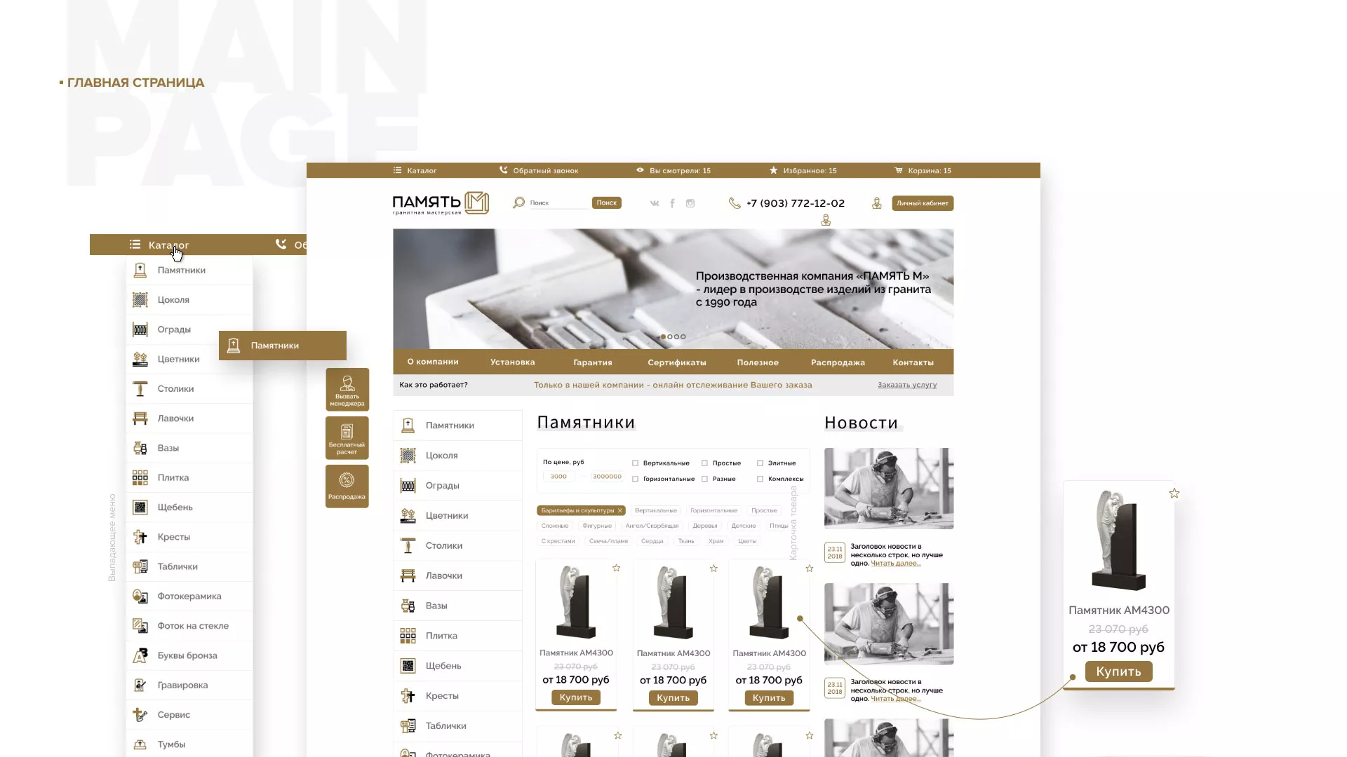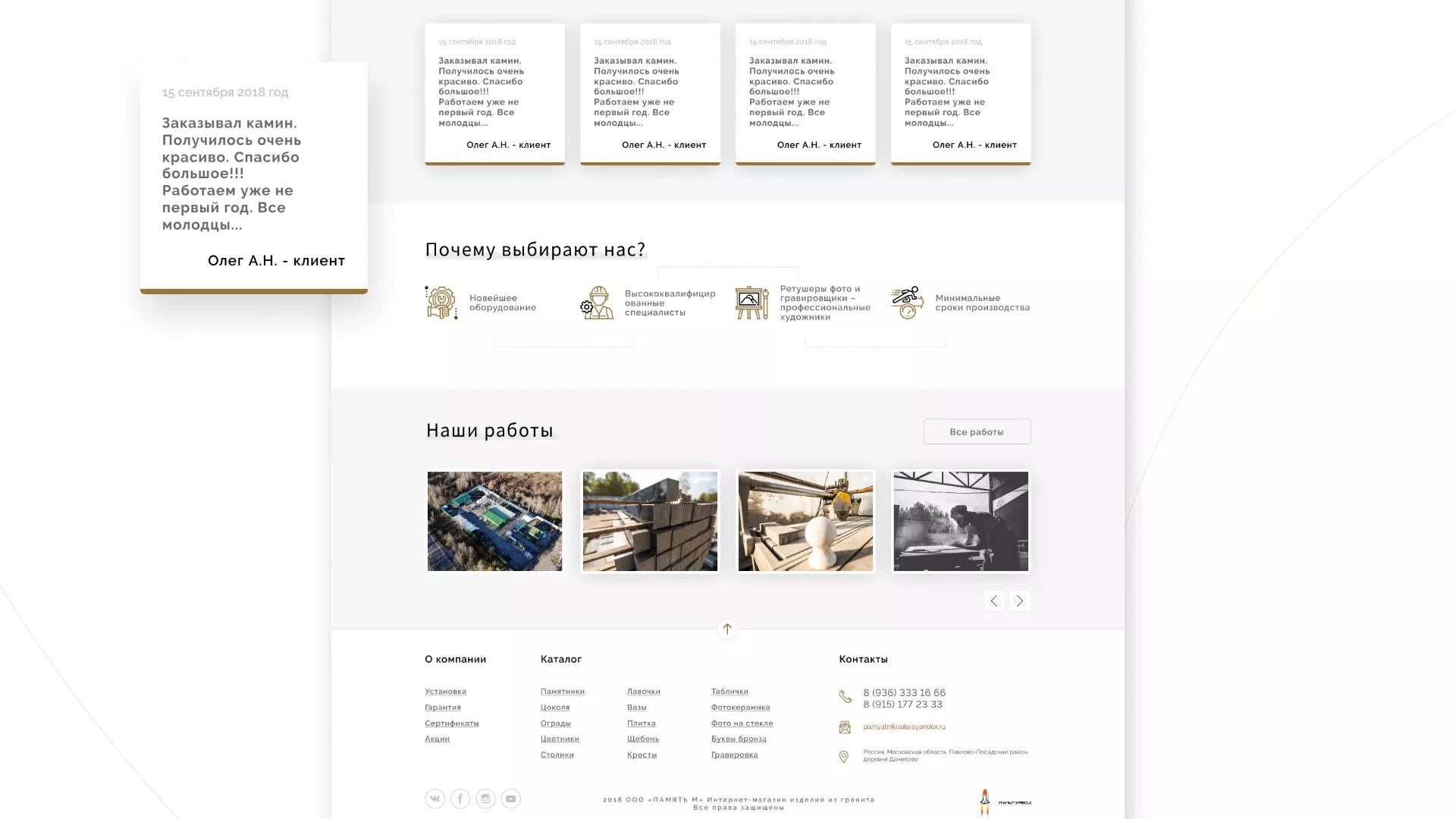 Разработка логотипа, фирменного стиля и сайта в Яровом для компании «Память-М». Компания является предприятием по изготовлению всех видов надгробных сооружений: памятников, цоколей на могилу, оградок, столов, лавочек, ваз, балясин, плитки, мемориальных комплексов. Компании «Память-М» изготавливает все виды мемориальных изделий на собственном производстве в Яровом.