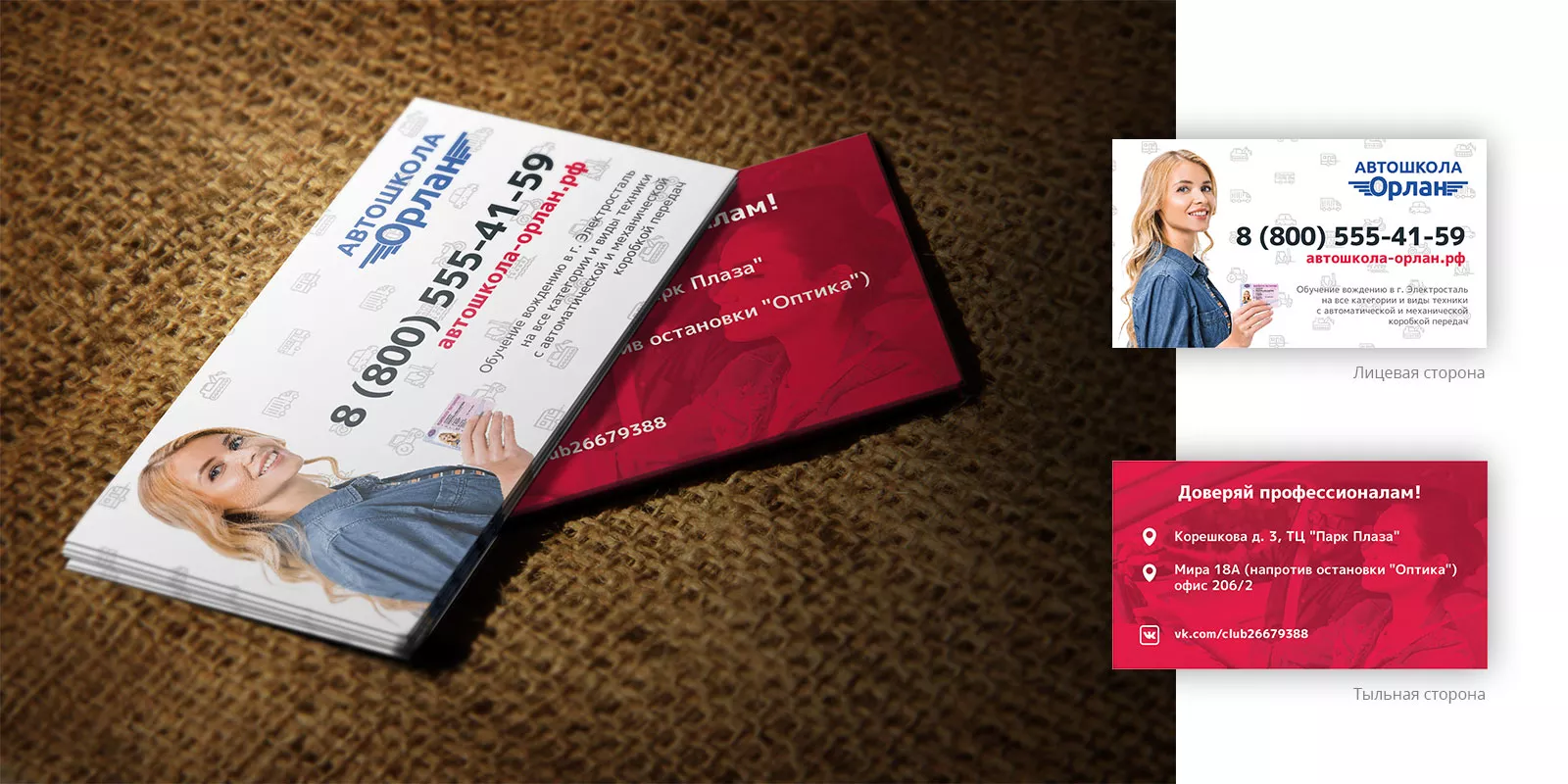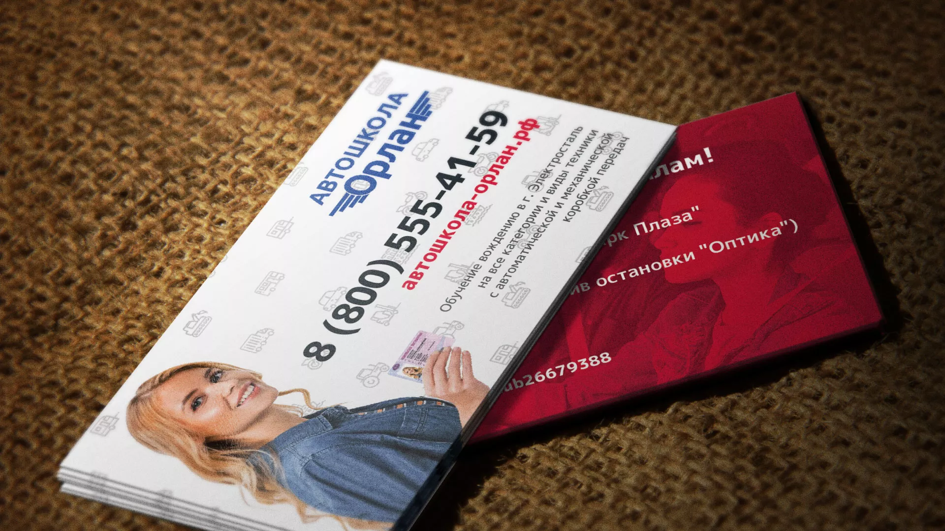 Разработка рекламных визиток автошколы «Орлан» в Яровом
