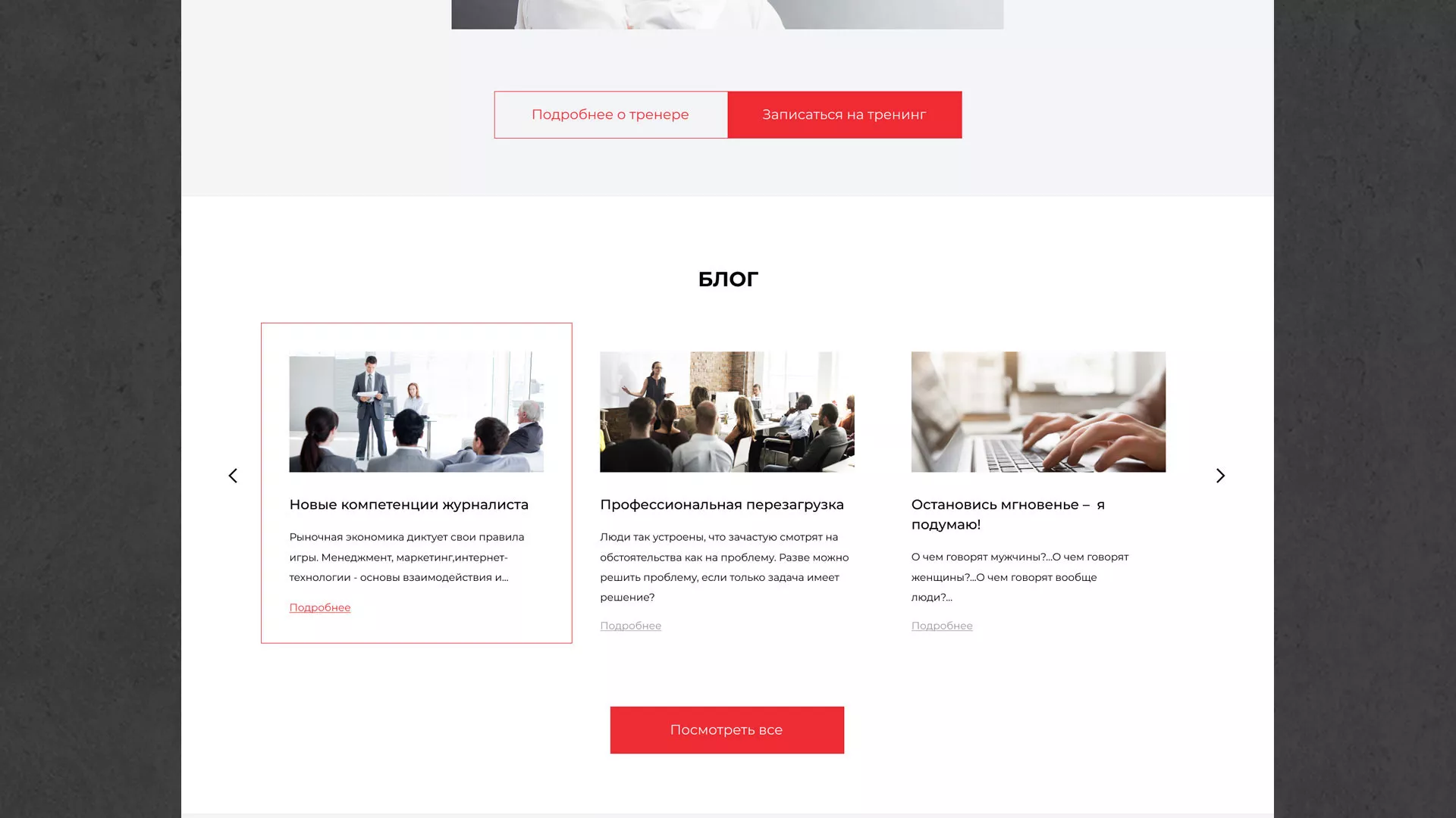 Создание сайта для бизнес тренера, коуча, ментора относится к непростым задачам для веб-агентства. Важно объединить пожелания заказчика с актуальными требованиями интернет-сегмента. В своей работе команда «Мультзавод» стремится именно к такой синергии.